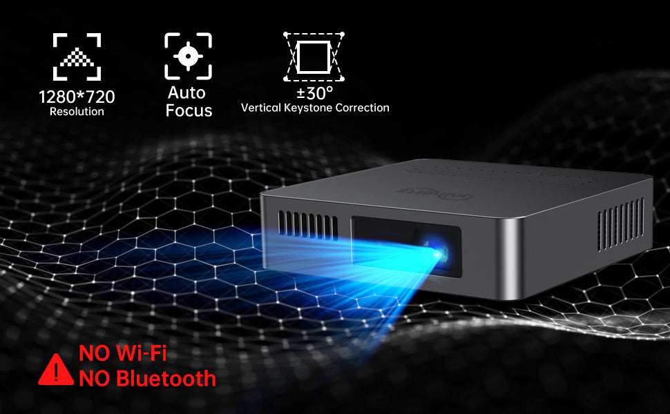 Experience brilliant visuals with the Unihertz Mini Projector! Boasting a sharp 1280x720 resolution, this compact device delivers crisp and clear images every time. Say goodbye to manual adjustments with Auto Focus ensuring your picture is always perfectly sharp. Plus, with 30° Vertical Keystone Correction, you can easily adjust the image to fit your screen from various angles.