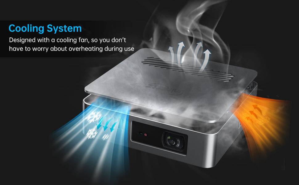 Enjoy long movie nights or extended presentations without any worry. The Unihertz Mini Projector is designed with an integrated Cooling System and built-in cooling fan to efficiently dissipate heat during operation.