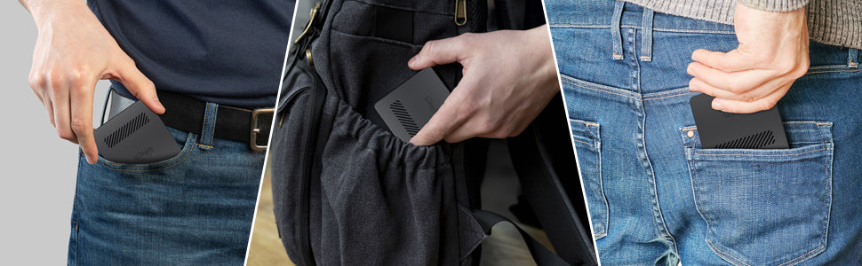 Pocket-Sized Dimensions: The tiny footprint of 2.98 x 2.98 x 0.72 inches allows it to easily slip into a jeans pocket, backpack pouch, or jacket pocket (as seen in 6.jpg).